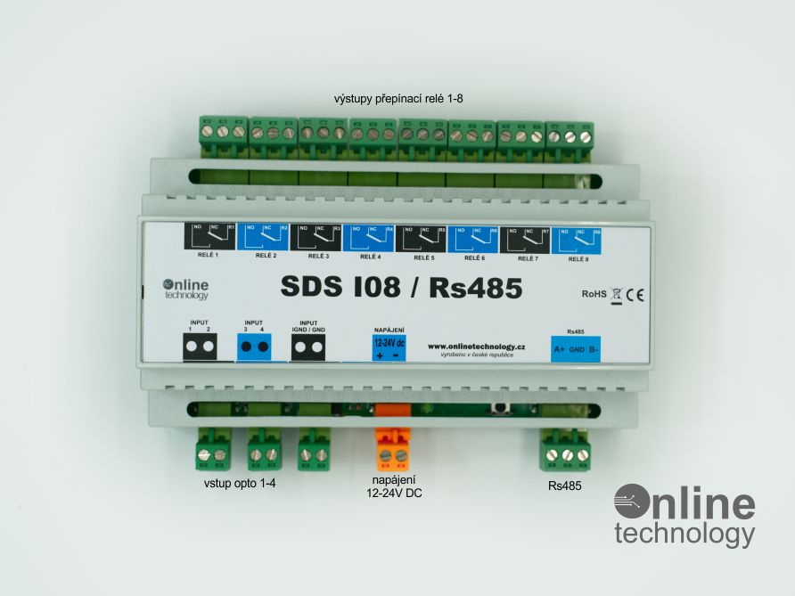 Modul je určen pro zapojení přes sériovou komunikační linku RS485. Doporučené zapojení je k modulu SDS MICRO verze E a SDS MACRO s převodníkem RS485. Modul však komunikuje i samostatně s PC přes USB/RS485 převodník. Je potřeba použít program SHOUSE_CONTROL.