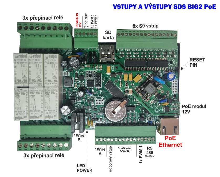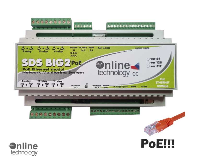 Nový SDS BIG2 64 POE nabídne všechny funkce stejně jako předchozí model. Navíc, ale umožňuje vedle klasického napájení kabelem ze zdroje , PoE napájení (Power over Ethernet). Napájení po datovém síťovém kabelu, bez nutnosti přivést napájecí napětí k přístroji dalším samostatným kabelem.