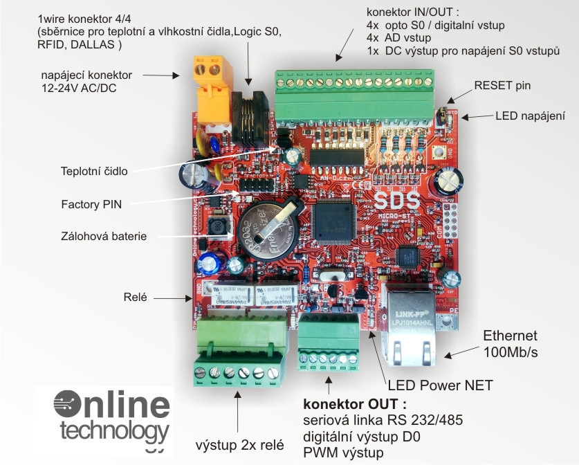 • 1 wire sběrnice jako další vstup LOGIC S0 (pro toto využití se doporučuje použí desku SDS OPTO817)