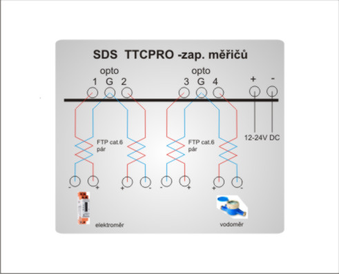 K dispozici jsou čtyři optické vstupy - použitelné např. pro měření odběru el.energie, vody a plynu. Všechny čtyři optické vstupy jsou napájeny (není potřeba přívádět napájení z venku - vstupy jsou označeny za aktivní při spojení vstupní svorky na GND).